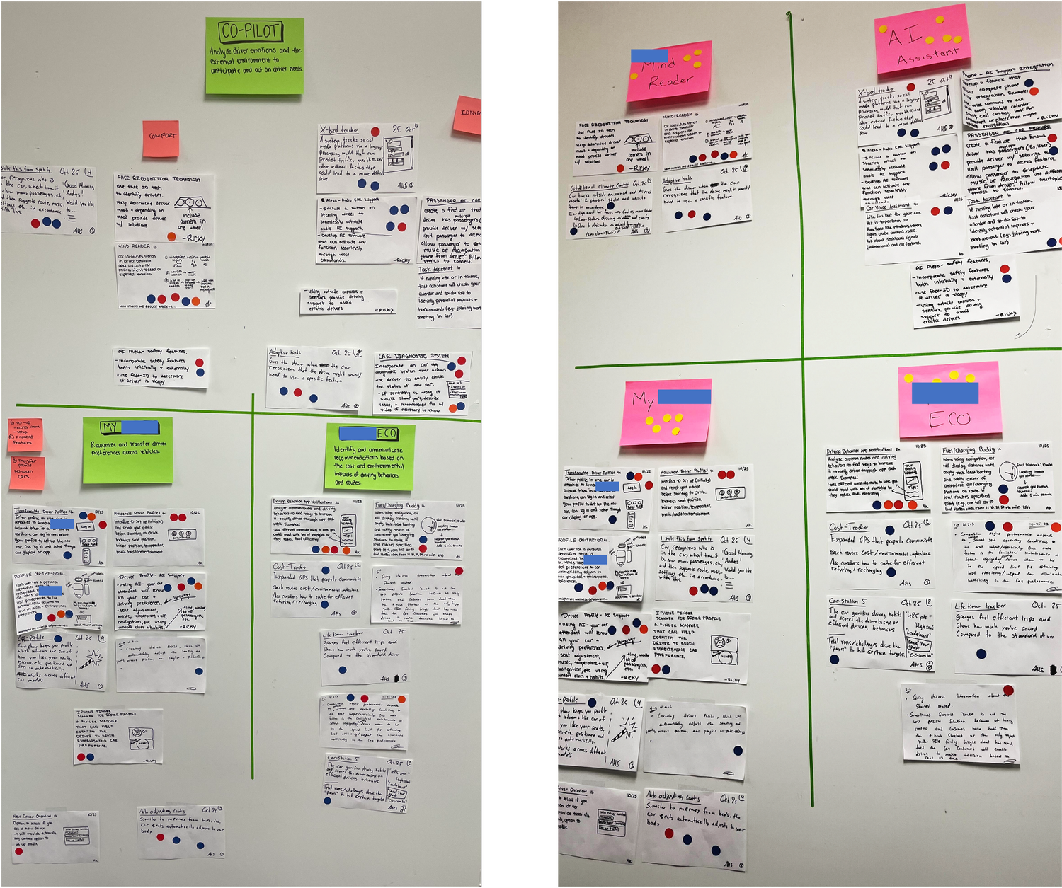 Focusing In: We organized, consolidated, and narrowed down our ideas until we came to a team consensus on a singular concept (made up of multiple ideas).